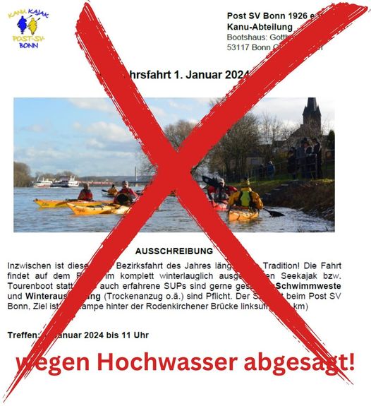 Liebe Paddlerinnen und Paddler Auf Grund des Hochwassers und der unklaren Möglichkeiten an der Einstiegsstelle muss ich die Bezirksfahrt von Neuwied am 14.1. leider absagen. Nichtsdestotrotz wünsche ich Euch einen guten Start in das Jahr 2024. Viele Grüße Elke Diese Kanutour verbindet Paddeln mit der Bahn! Nehmt am Pilotprojekt Ökostar des Bezirks 4 teil! Termin:...Weiterlesen→