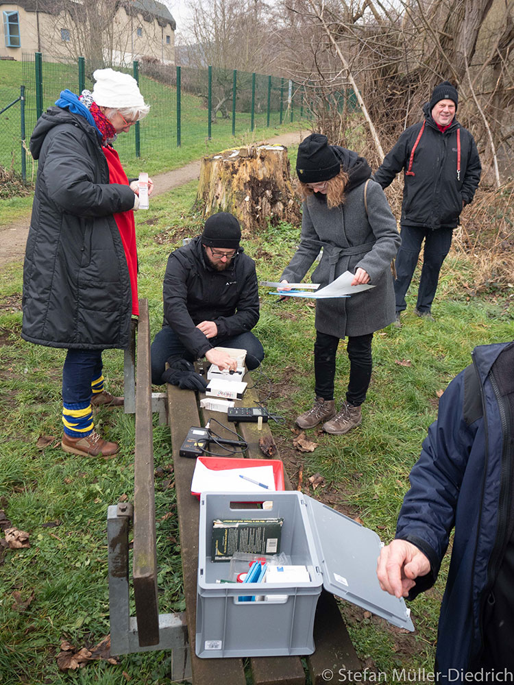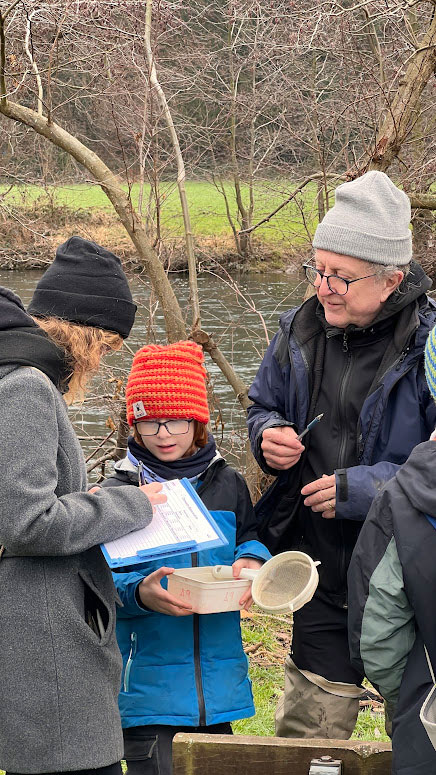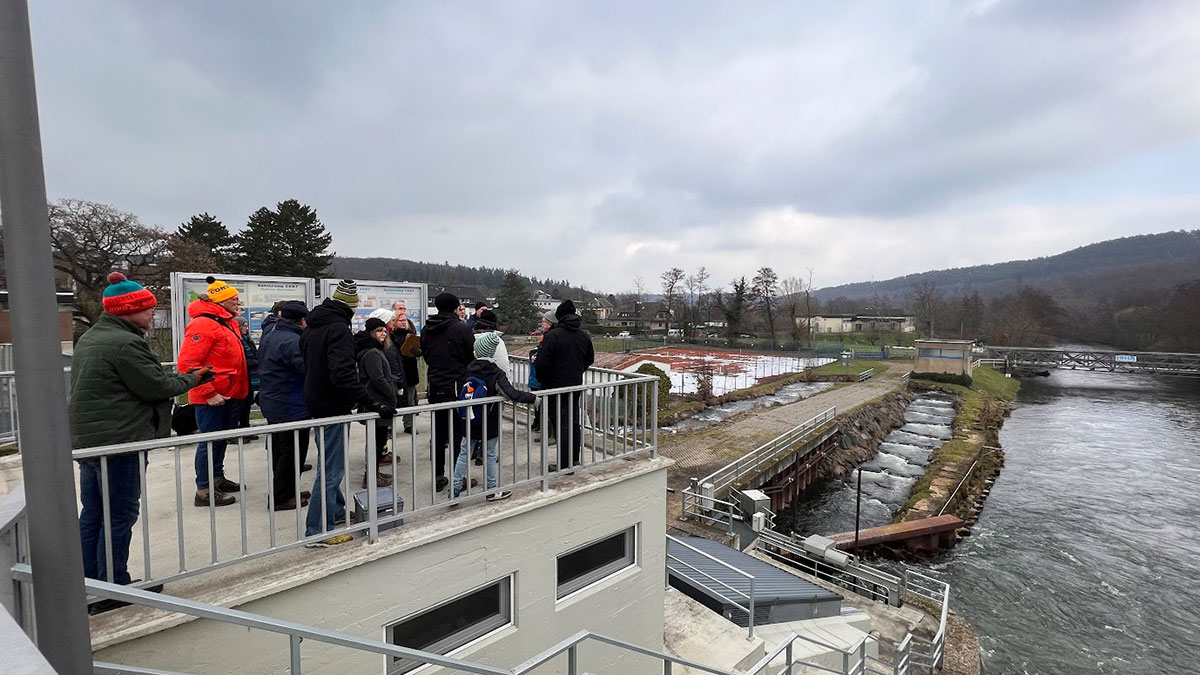 Dann ging es zu einer kleinen Exkursion zur Rur. Zunächst wurde der Fischaufstieg am Staudamm besichtigt, bevor die Gewässergüte bestimmt wurde.