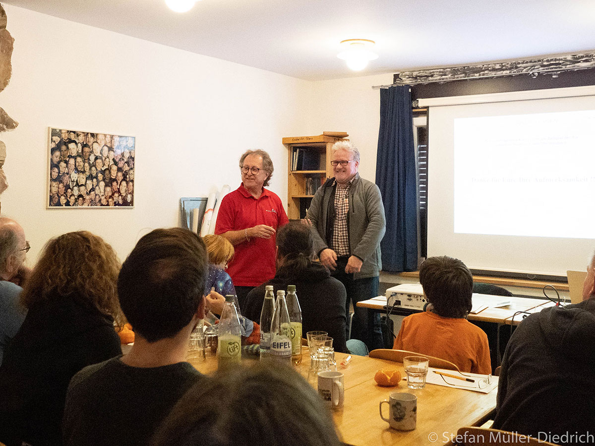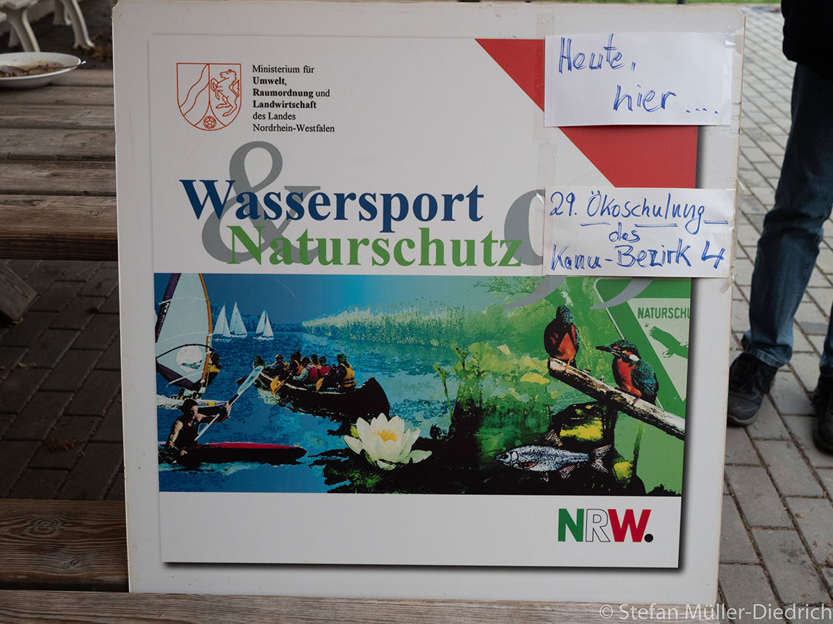 Im Anschluss war Lothar Gerhards von der Unteren Naturschutzbehörde im Kreis Düren an der Reihe. Sein professioneller Vortragsstil, gepaart mit jeder Menge Verständnis für uns Paddler machte das eigentlich sehr trockene Thema „Ökologische Spielregeln für den Kanusport, dargestellt am Beispiel der Rur“ für alle sehr interessant. Er berichtete von einem Massenansturm von Paddlern an der Rur zu Beginn der 1990er Jahre, der aufgrund der hohen Naturschutzwürdigkeit nicht toleriert werden konnte. Nur durch die uns bekannte Beschränkungen der Anzahl der Paddler sowie die Sperrung vom 01. März bis zum 15. Juli konnte ein absolutes Paddelverbot vermieden werden. Herr Gerhards berichtete von der konstruktiven Zusammenarbeit zwischen den verschiedenen Interessensgruppen wie Naturschutzbehörde, Paddlern und kommerziellen Verleihern und das gute Verhältnis untereinander. Auch stellte er fest, dass die eingeführten Regeln auch für die Natur den gewünschten Erfolg gebracht hätten.